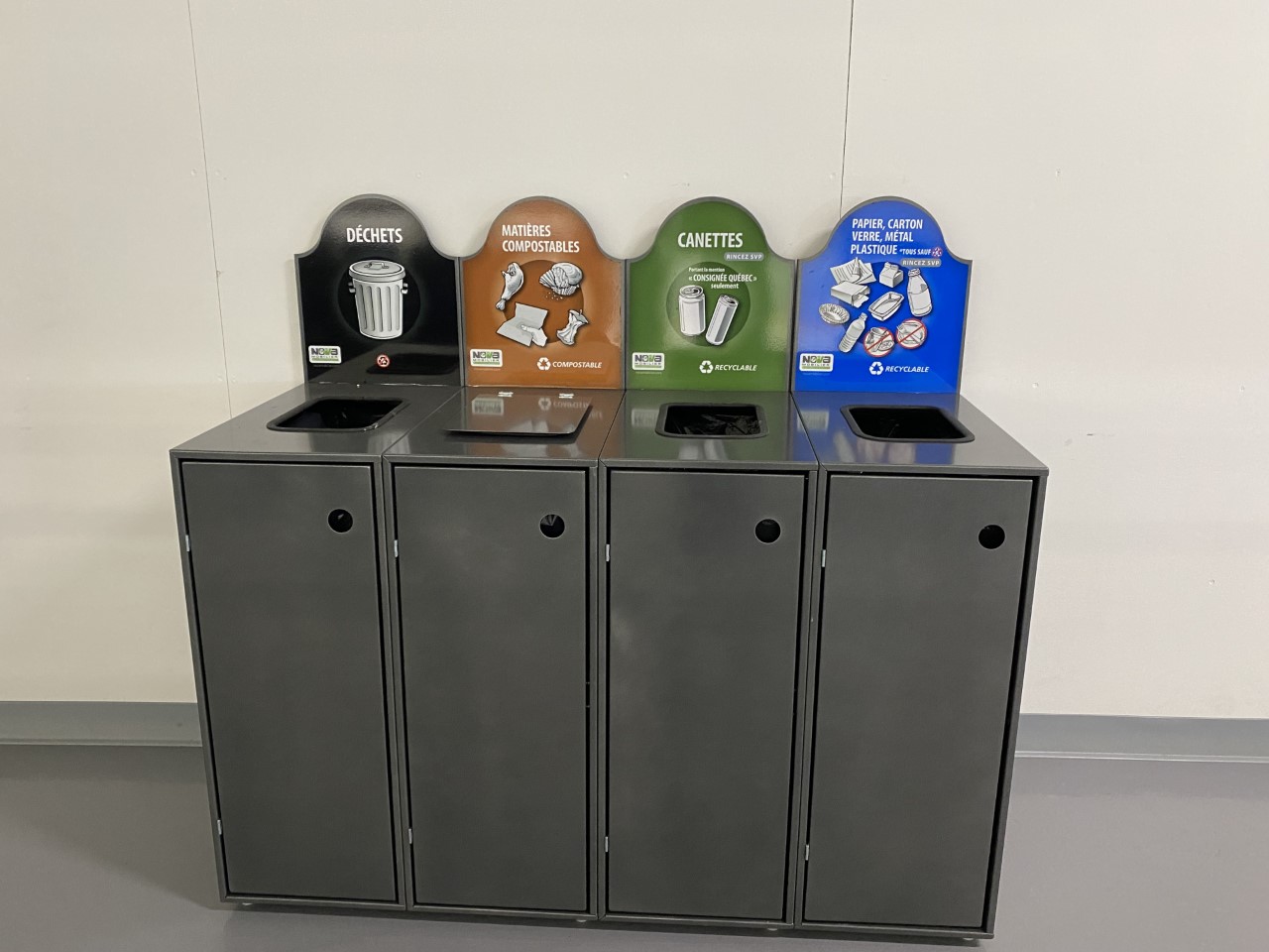 Mont-Joli, le 27 janvier 2023 – L’Amphithéâtre Desjardins s’est doté de trois stations de tri sélectif pour encourager les usagers et usagères à bien trier leurs déchets. Ces stations à quatre voies (déchets, matières recyclables, matières compostables et consigne) sont installées dans des endroits stratégiques du bâtiment, dans ou près de l’aire de restauration.