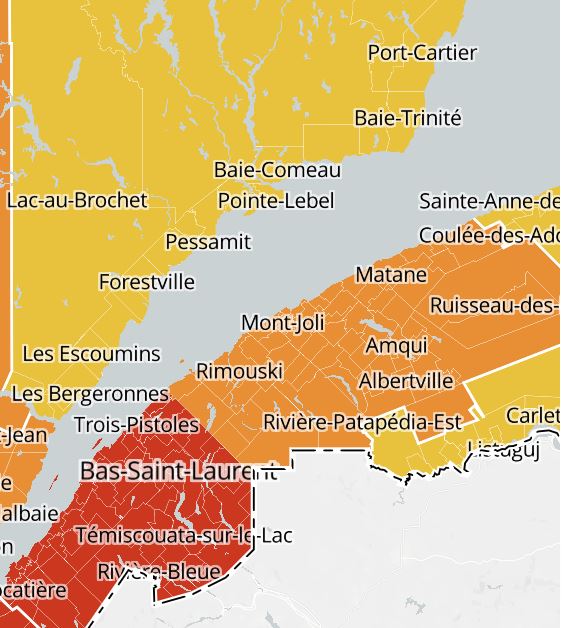 - Les déplacements interrégionaux entre les zones jaunes et orange ou rouge demeurent non recommandés.