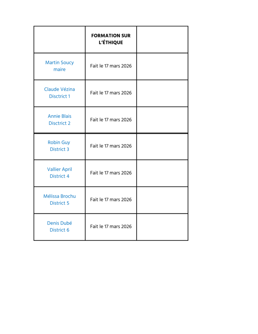 Les élus se sont dotés d’un code d’éthique et de déontologie, conformément aux exigences de la Loi.
