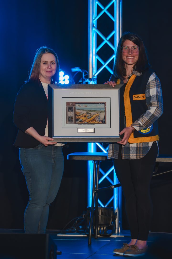 Marie-Élyse Gagnon, lauréate du Mérite municipal – relève, reçoit son prix des mains de la conseillère municipale Annie Blais. Crédit photo: Maxime Amyot