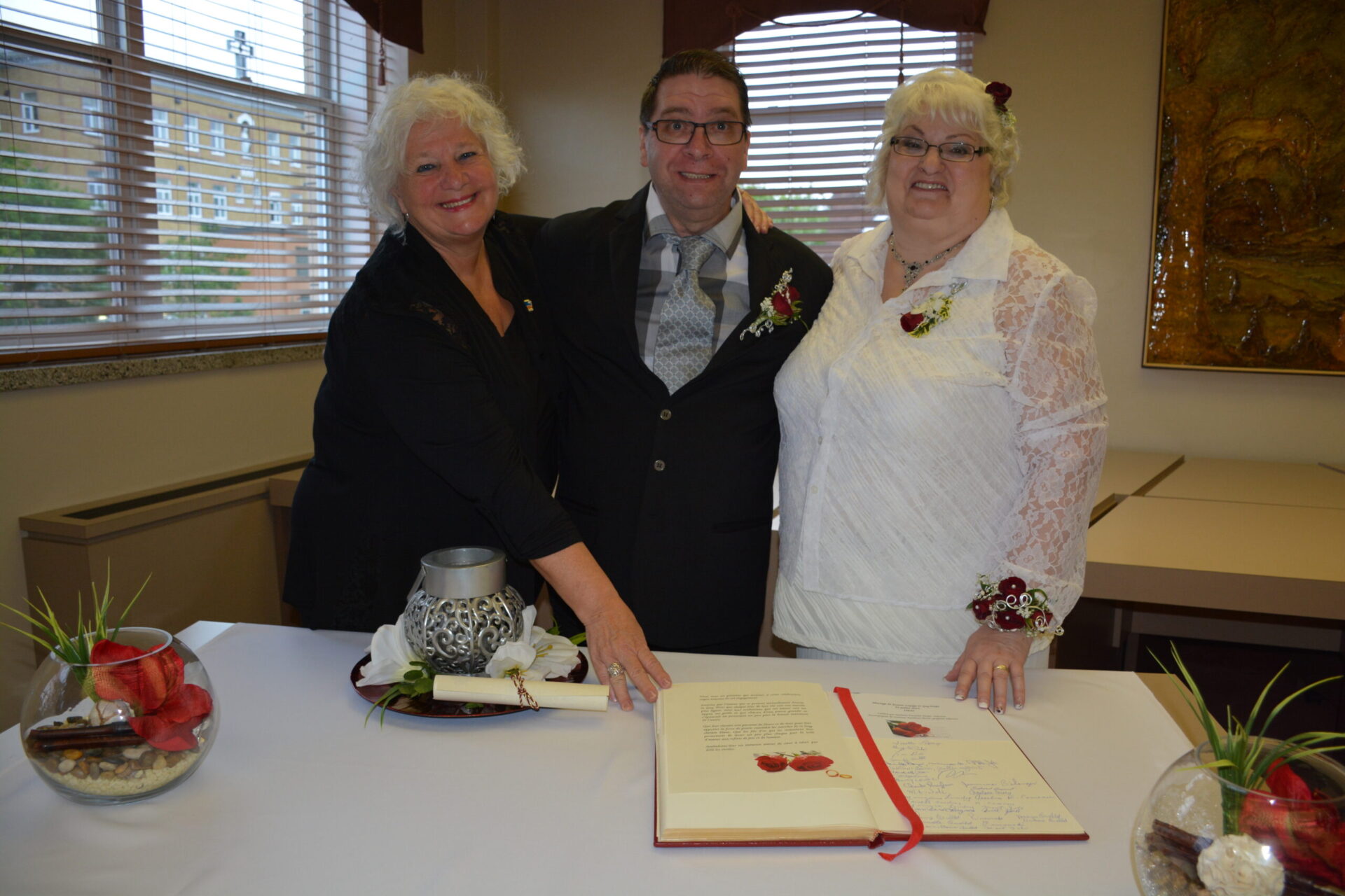 Danielle Doyer, mairesse de Mont-Joli ainsi que les mariés : Guy Dubé et Josette Lepage.