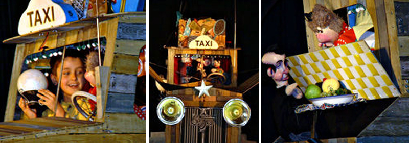 Dans ce spectacle, qui s’adresse aux enfants âgés de 5 à 11 ans, on fait la connaissance de Berthe et Ben, chauffeurs de taxi. Ces derniers conduisent jour et nuit dans les rues de leur quartier. Leur véhicule loufoque est rempli d’histoires qui mettent en scène notamment leur fils Bébert. Un beau jour, après bien des péripéties, ils réussissent à mettre les pieds dans un joli coin du globe où leur existence prend un autre sens. Pour connaître le reste de l’histoire, il faudra assister au spectacle. Avec les Marionnettes du bout du monde.